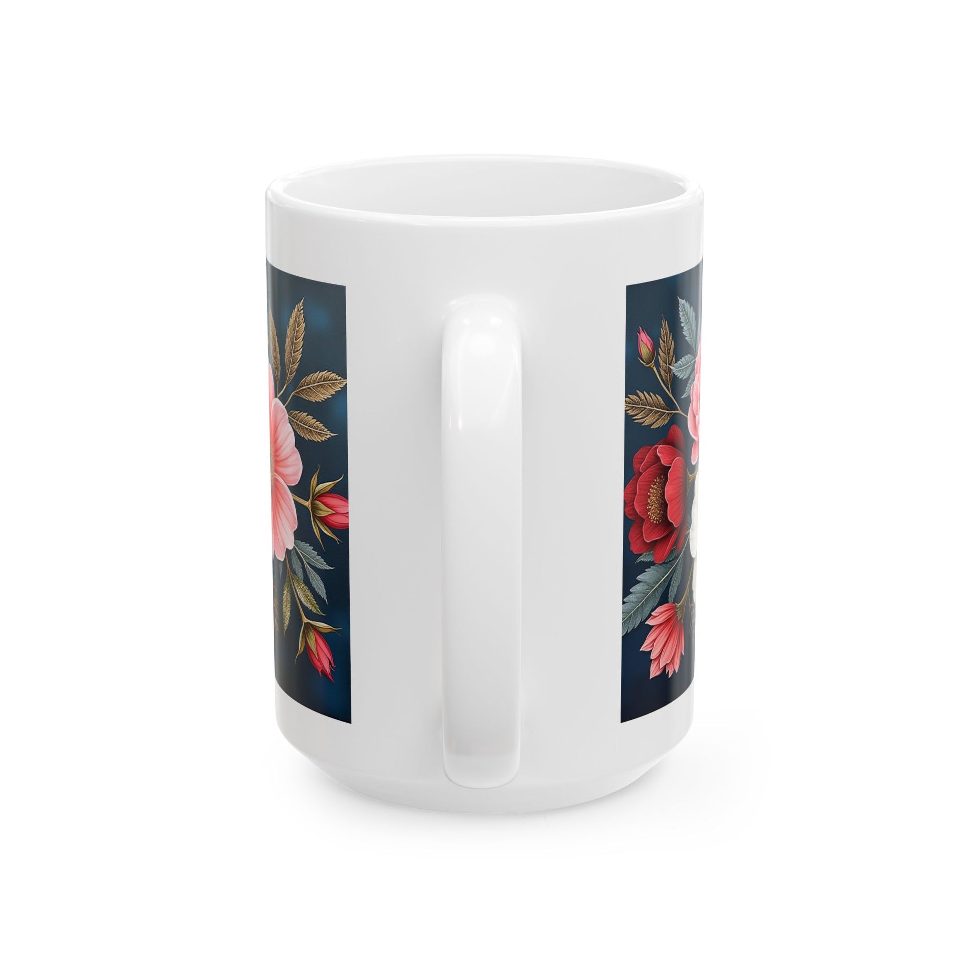 Sip your favorite beverages in style with this beautifully designed ceramic mug. Featuring a vibrant floral pattern on a dark blue background, this mug adds a touch of elegance to your morning routine or cozy afternoon tea. Perfect for coffee lovers, tea enthusiasts.
