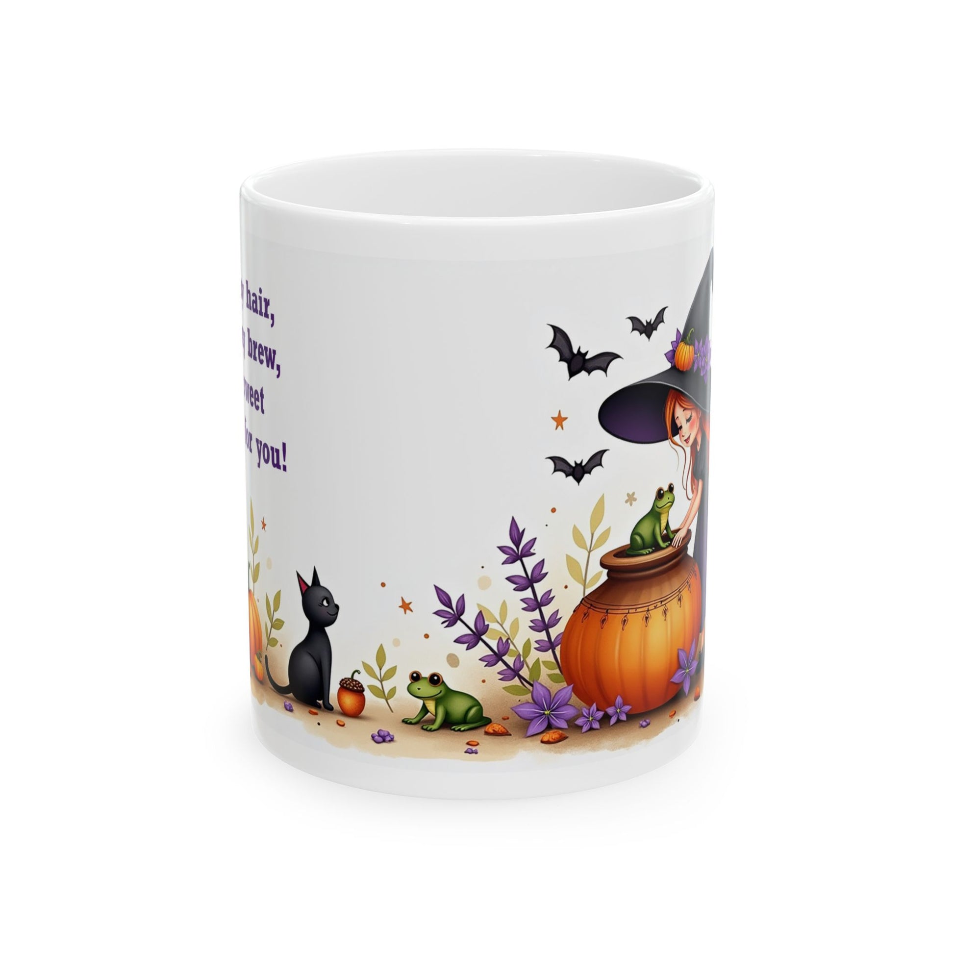 Enjoy your favorite fall beverages in this charming Halloween Witch Ceramic Mug. Designed for coffee lovers and witch fans alike, this spooky yet cute mug adds festive flair to your daily routine. This full wrap design with a cute verse makes it perfect for cozy mornings or as a thoughtful holiday gift. Embrace the spirit of the season with a mug that blends fun Halloween decor with practical use.