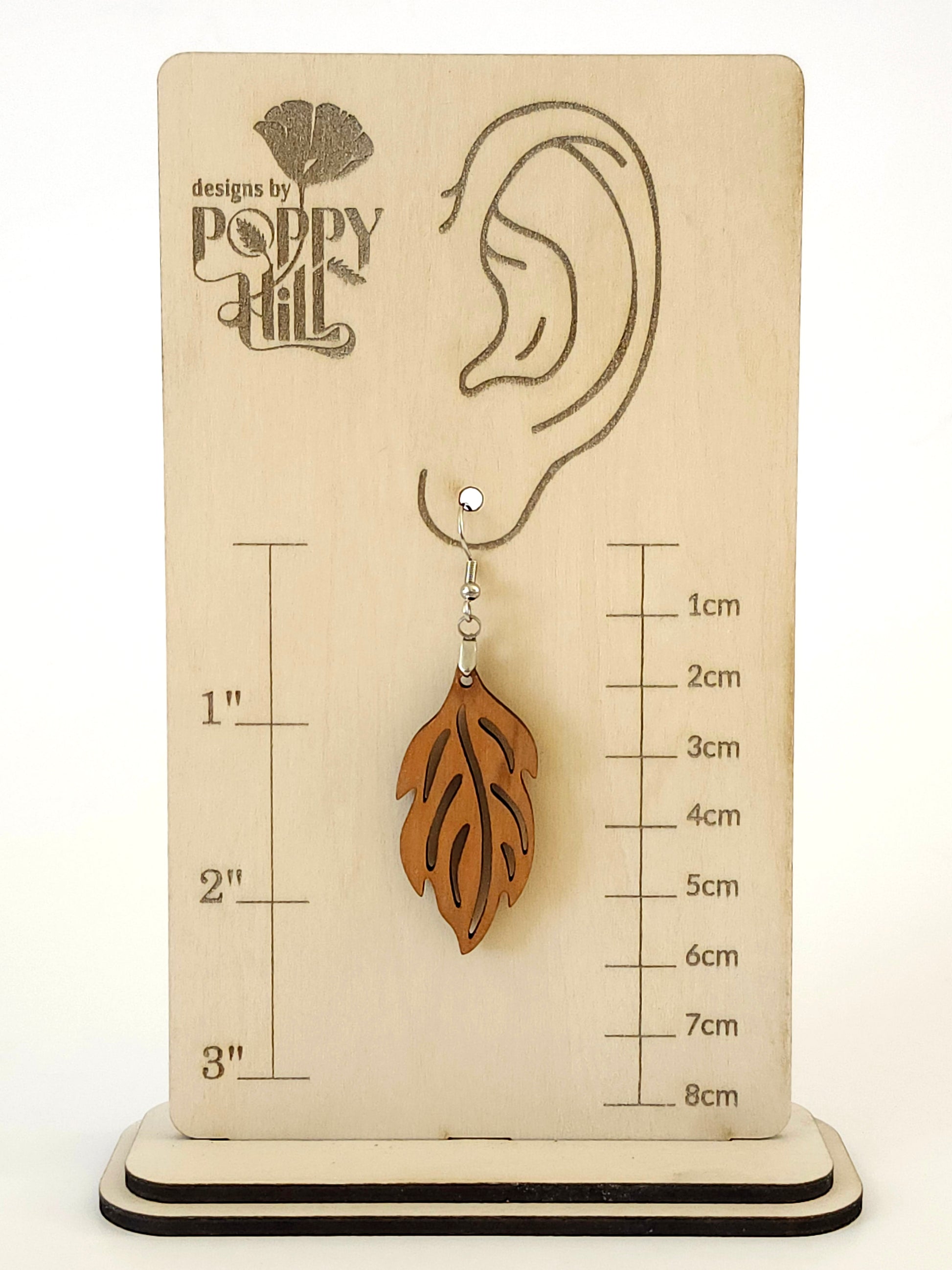Celebrate the beauty of the outdoors with these Autumn leaf inspired earrings, The cutout pattern that highlight the natural wood's warmth. This lightweight accessories ensure comfort throughout your day, while their intricate leaf motifs bring a subtle touch of nature's splendor to complement your personal style.